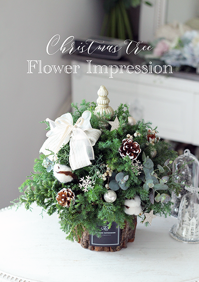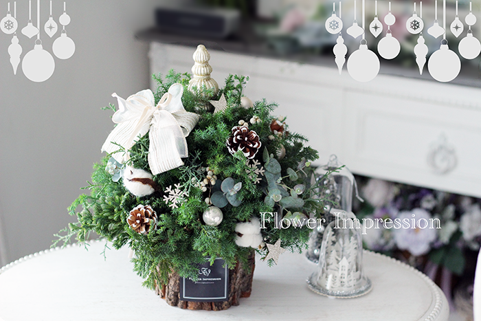 ぽってり可愛いクリスマスツリー♡生花季節のアレンジメント