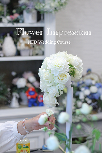 今回ご紹介するのは、「NFDウエディングフラワーコース」を受講中のお二人の生徒さまの作品です。